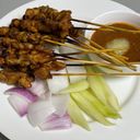 Chicken satay, crispy mid-joint wings, sunny side-up, wok-fried sambal rice, achar