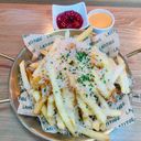 Cucumber, caramelised onions, lettuce, tomato, house made burger sauce, fries