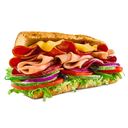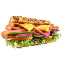 Imagine freshly baked bread stuffed with tender sliced turkey breast, chicken ham, chicken bacon with melted cheese.