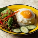 - 58. Holy Basil Chicken / Pork with Egg 九层塔叶炒鸡/猪肉碎饭 / ผัดกะเพราราดข้าวไข่ดาวS$ 16