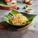 the biryani rice has a cheap rose aroma, very chemical smell diphenyl oxide, dislike. the 5 star is for putu piring, very nice.