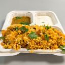 Spiced, marinated chicken layered with fragrant basmati rice, herbs, and cooked in a sealed pot.
