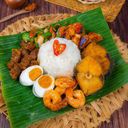 A classic powerhouse of flavors! A fragrant rice dish topped with spicy sambal goreng, Savory-sweet serunding, rich sambal tumis, and a golden begedil. Choose your protein and experience the ultimate Malay comfort meal!