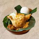 (Comes in Thigh or Breast but Chicken part request is subject to availability). Signature Smashed Fried Chicken Set with Rice. The Original, Tenderliciously Fresh and Deeply Marinated in our Secret Traditional Recipe. Served with Tofu, Tempeh, Side Vegetables, Crispy Golden Crumbs and our Signature Chilli.