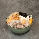 Includes: 正宗猪骨汤底 Authentic Pork Bone Soup Base, 深海大白虾 Fresh White Sea Prawns, 鱼子虾滑 Ebiko Prawn Paste, 鲜带子 Fresh Scallops, 黑鱼片 Sliced Sneakhead, 滑豆腐 Silken Tofu, 白玉菇 White Shimeji Mushroom, 云耳 Black Fungus, 白饭 White Rice, 炸米 Crispy Rice, 葱花 Spring Onion