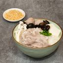 Includes: 正宗猪骨汤底 Authentic Pork Bone Soup Base, 西班牙白猪肉 Sliced Spanish Pork Collar, 软骨爽肉丸 Soft Bone Pork Meat Ball, 滑豆腐 Silken Tofu, 白玉菇 White Shimeji Mushroom, 云耳 Black Fungus, 白饭 White Rice, 炸米 Crispy Rice, 葱花 Spring Onion