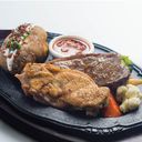 Comes with choice of 4 Soup, 3 sides and a family platter of Grilled N.Z. Striploin Steak, Lamb Chop, Chicken Chop and Chipolata Sausage with Bacon.