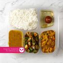 White ponni rice served with two standard vegetables, raita & served 1 pax