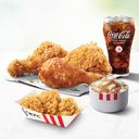 Enjoy 3 pcs of KFC chicken (Original Recipe or Hot & Crispy) paired with 3 pcs Hot & Crispy Chicken Bites, a medium Whipped Potato and a refreshing Coke Zero Sugar.Â