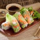 2 Pcs rice paper salad roll with steamed prawns. Nuoc cham & tuong den dips
