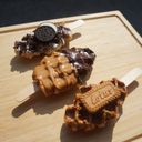 Croissant baked waffle drizzled in speculoos biscoff sauce and sprinkled with speculoos crumbs and a speculoos biscuit