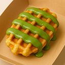 Crispy croffle topped with a rich, aromatic match sauce, blending earthy and sweet notes in every bite.