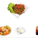 - 101. Stir-fried Basil + Tom Yum Soup + Rice + Beverage ซ็ตS$ 15.84