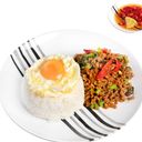 - #71.BASIL MINCE MEAT WITH RICE (ผัดกะเพราหมูสับราดข้าว)S$ 9.24
