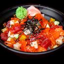 A Japanese dish consisting of fresh seafood served over sushi rice in a bowl.