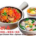 Claypot rice, claypot sesame oil chicken, soup & 1 plain rice 砂锅饭 + 砂锅麻油鸡 + 汤 + 1个白饭