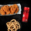 - 1x 3pcs chicken mid-wings - 1x pasta/rice/fries - 1x can drink