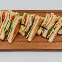 Layers of tender turkey, crispy bacon, fresh lettuce, juicy tomato, and creamy mayo on toasted bread.