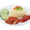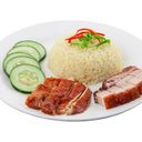 - Roasted Pork + Roasted Chicken Rice 烧肉烧鸡饭S$ 8