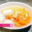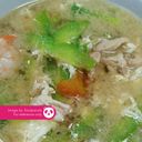Sliced bitter gourd soup mixed with tofu, tomato & mushrooms