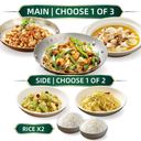Choice of 1 signature dish + 1 classic side + 2 bowls of steamed rice