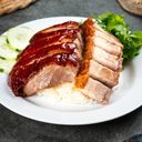 Popular Chinese dish made by roasting or barbecuing marinated pork, served with rice