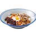 Handmade noodles served with minced pork, egg, topped with fried ikan bilis
