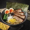 Our original-recipe pork bone broth ramen with toroniku cha shu (tender roast pork cheek) and Okinawa ramen egg