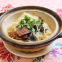 Mixed vegetables, mushrooms and fried taukee in a soybean and prawn stock stew