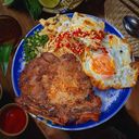 Pork chop rice is yummy. Pork is tender. The egg coffee is strong, though too bitter for me