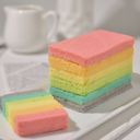 A colorful and fluffy sponge cake with layers of vibrant colors and sweet flavor.