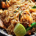 Thin rice noodles stir-fried with vegetables, protein, and a savory sauce in Thai cuisine.