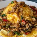 A delicious and savory noodle dish with stir-fried vegetables, meat, and seasonings.