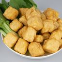 Deep-fried tofu pockets filled with a mixture of vegetables and mushrooms.