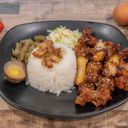 Sweet and savory honey-glazed chicken chop served over steamed rice.
