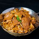 Tender beef stir-fried with wide rice noodles in a savory and flavorful sauce.
