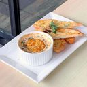 Cheesey creamy dip with prawn chunks & toasted garlic bread.