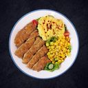 Deep-fried popcorn chicken served with fragrant butter rice and refreshing coleslaw.