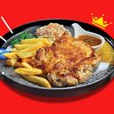 Juicy chicken thigh grilled to perfection, finished with Skillet's signature savoury brown sauce. Served with crispy French fries and refreshing coleslaw.