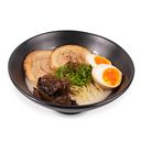 Self-made hakata noodle doused in rich pork bone broth. Topped with ajitama and pork slices.