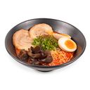 Self-made hakata noodle doused in rich mild spicy pork bone broth. Topped with ajitama and pork slices.