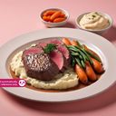 Slow roasted hand-carved prime beef topped with our homemade gravy served together with creamy mash, garden picked carrots, sweet beans, baby corn and Yorkshire pudding.