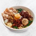 Chili ban mian with minced pork, pork slices & pork ball dry 辣椒板面 肉碎, 肉片 & 肉圆干