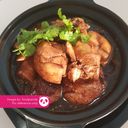 A fragrant dish of succulent chicken cooked in secret recipe sauce with ginger, hua tiow wine, black fungus and sesame seed oil.