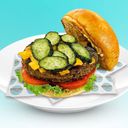 Grilled beef patty, lettuce, tomato, caramelised onions, premium burger sauce & crunchy sweet potato and pickle chips on a toasted burger bun