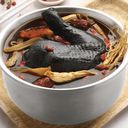 麻油鸡没姜丝,腌渍的时间还不够吧,鸡还没入味。鸡块和排骨需斩成小块,才能入味,也容易煮。随便吃还可以。