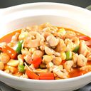 Tender river shrimp wok-tossed with spicy green chili for a flavorful and satisfying seafood dish.