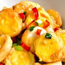 Crispy stir-fried lotus root with a savory and aromatic blend of spices and vegetables.