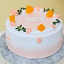 6". Our sakura mango peach cake is inspired from the gorgeous cherry blossom season in Japan. It consists of peach flavour infused sponge, mango puree layer & peach slices