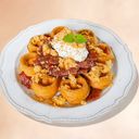 A unique fusion of sweet and savory, featuring crispy waffles topped with Bak Kwa, a traditional Chinese BBQ pork